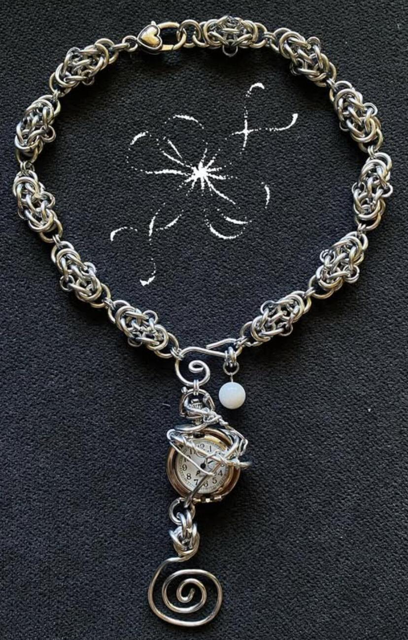 I started making chain mail by wrapping aluminum wire around chopsticks and cutting the coils into jump rings to then weave into patterns. The piece on the left was made using this method about a month after I first started.The piece on the right is one of my most recent pieces (April 2025), made with all stainless steel.